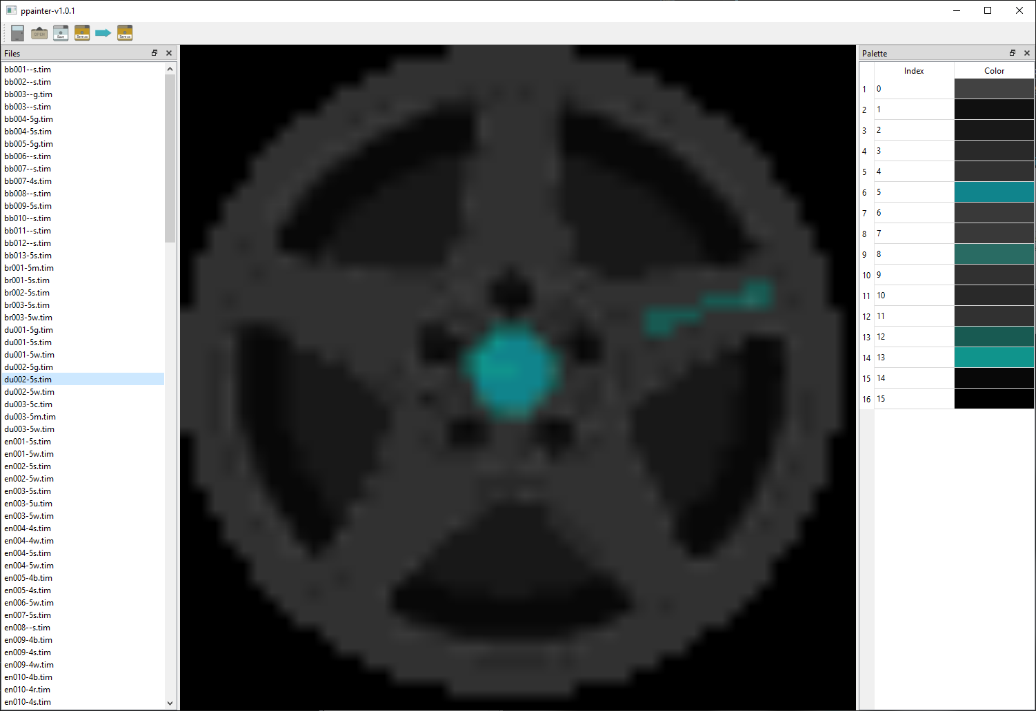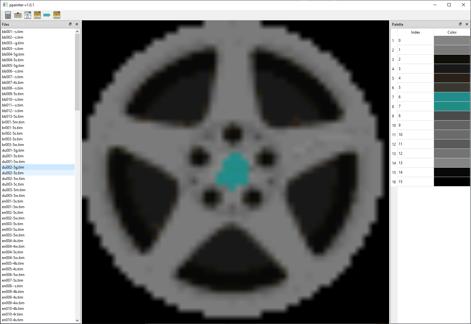 Designed primarily to edit wheel images for Gran Turismo 2, pPainter is a simple to use palette editor written in Python.